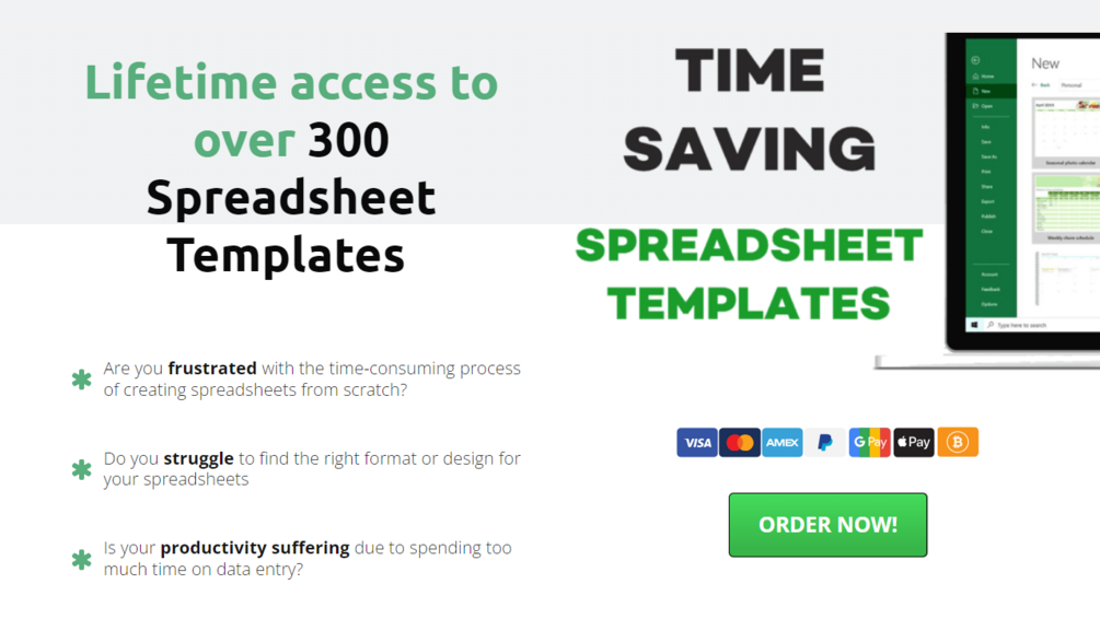 Lifetime access to over 300 Spreadsheet Templates